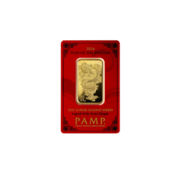 Crafted by PAMP, a world renowned Swiss precious metals refinery accredited by the Swiss Central Bank and the LBMA with a legacy of excellence in combining precision and artistry.. The PAMP Suisse Lunar Legends Azure Dragon 1oz Gold Bar is the first in the new PAMP Lunar Legends series and is released to commemorate The Year of The Dragon 2024. A prestigious addition to any collection or portfolio