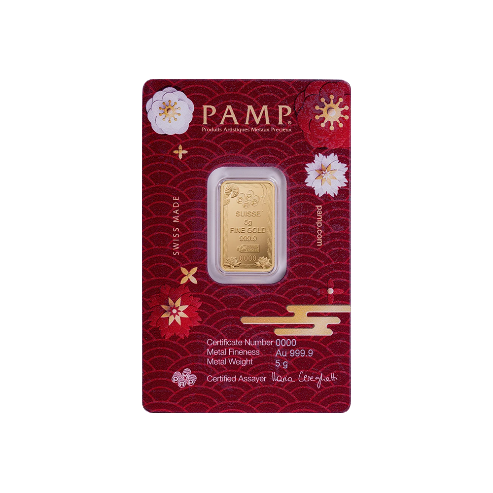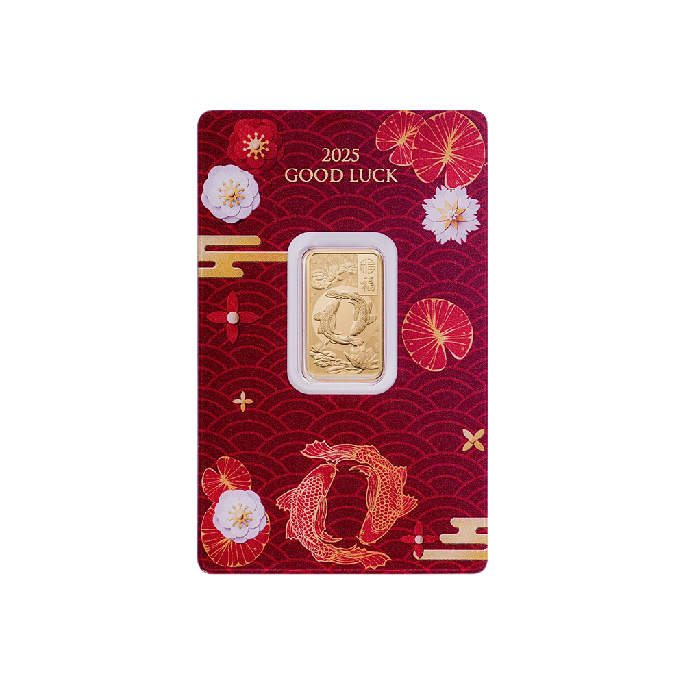 Meticulously struck from 5g of 99.99% fine gold, PAMP will produce no more than 7,000 of the 2025 Good Luck Koi Fish 5g gold minted bars.
