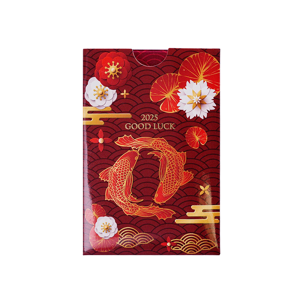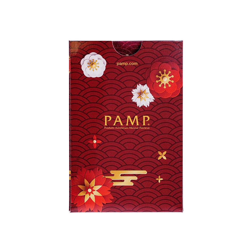 Each PAMP 2025 Good Luck Koi Fish 5g gold minted bullion bar is provided in an auspicious red coloured CertiPAMP card. The back has the bars details as well as the unique serial number. Each bar comes with a 2025 Good Luck Koi Fish themed sleeve.